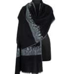 Our black cashmere scarf is a unique blend of comfort, style, and class. Made from 100% Pashmina wool, it features intricate Kashmiri embroidery done by skilled artisans over months. Measuring 175 by 85 cm, its oversized design offers a sophisticated drape, perfect for transitioning from day to night. Lightweight yet luxurious, its handcrafted floral motifs provide timeless elegance that endures.