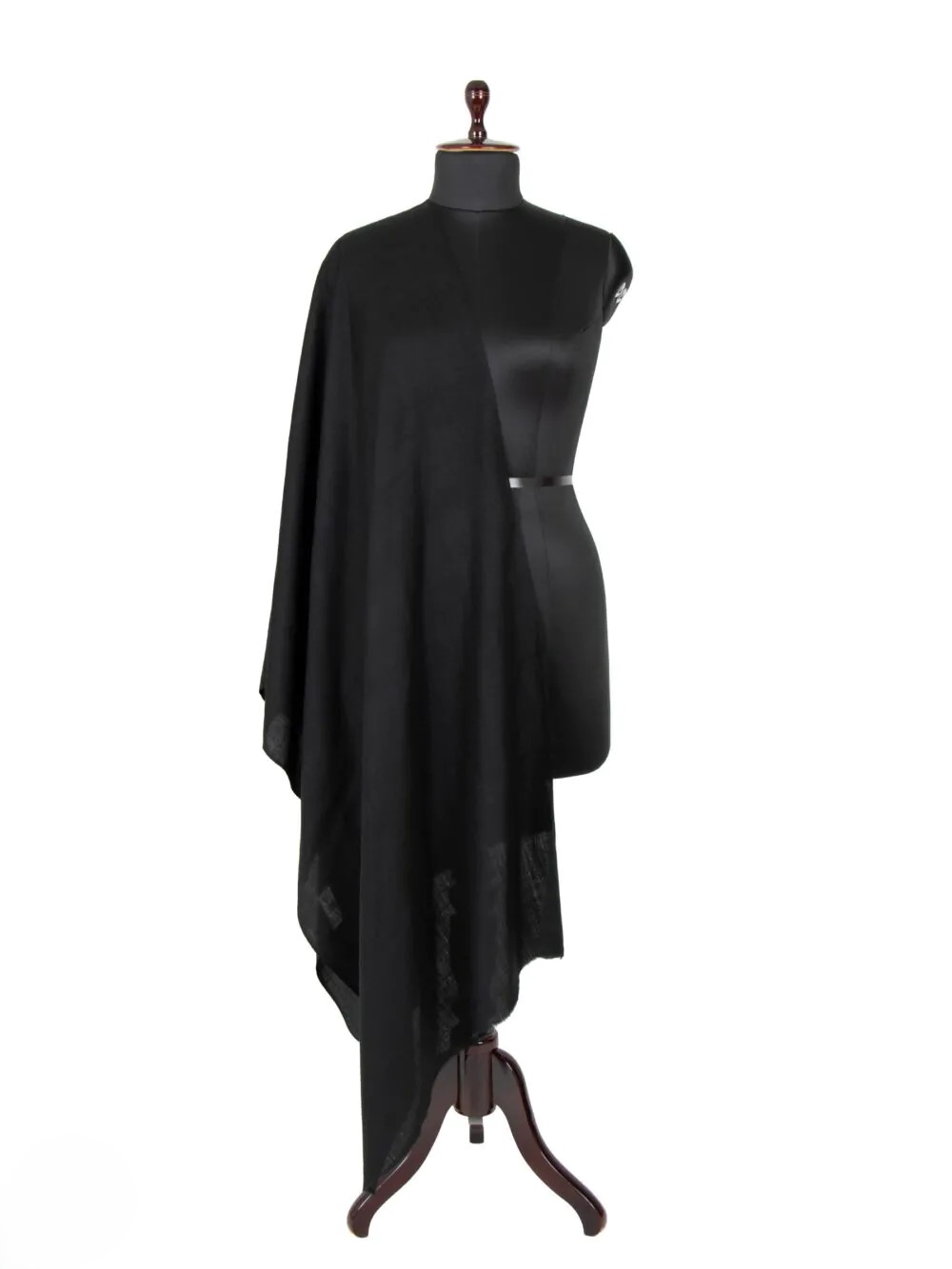 Wrap yourself in the elegance of this Black woollen wrap, made from 100% pure Himalayan sheep wool. Featuring a handwoven border with distinctive Northern Indian patterns, it combines traditional craftsmanship with modern design. Each wrap is meticulously crafted by skilled artisans, offering a cozy, unique accessory that showcases both cultural heritage and personal style.