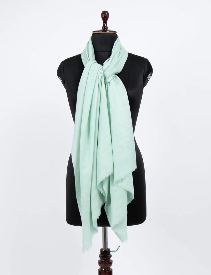 This handwoven wrap, made from pure pashmina sourced from Ladakh, offers unparalleled softness and warmth. Its elegant bluish-green hue and meticulous craftsmanship ensure both style and lasting quality. Elevate your wardrobe with the refined beauty of this pashmina wrap.