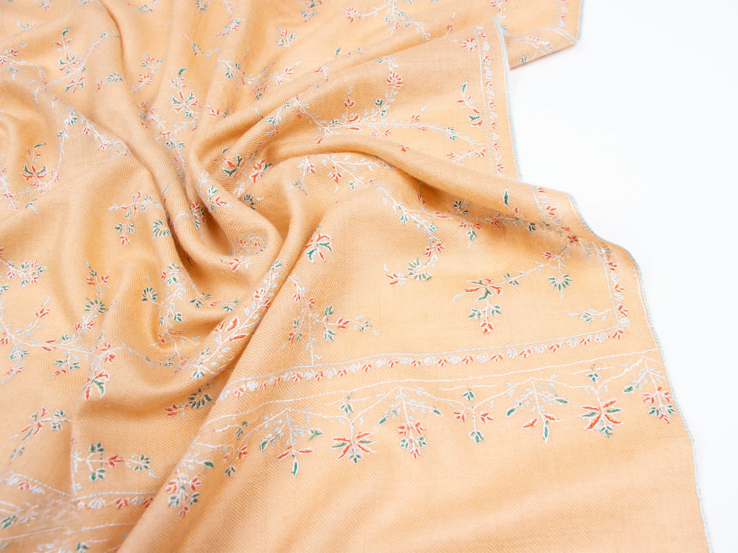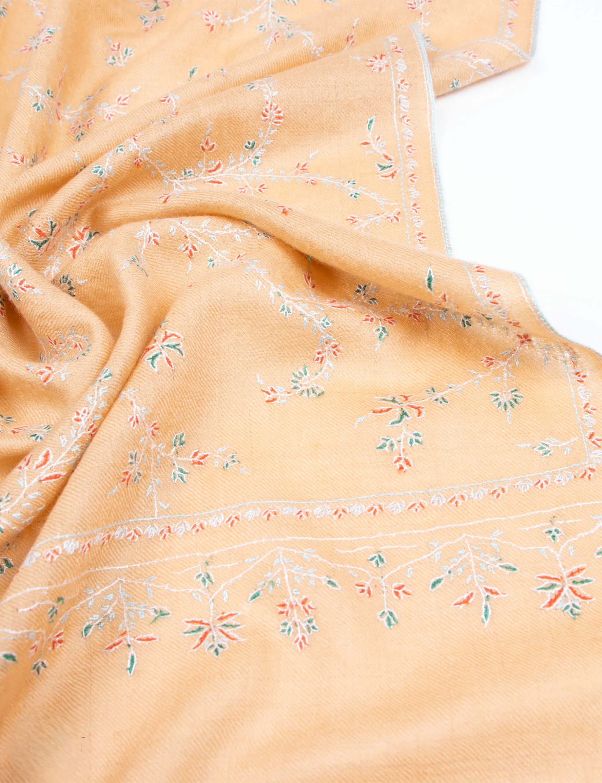 Discover the Blush Embroidered Pashmina Wrap—a masterpiece of Ladakhi craftsmanship. Handwoven from pure pashmina, it boasts unrivaled softness and intricate hand embroidery. Its delicate blush hue and artisanal detailing make it a timeless accessory that enhances any outfit with elegance and luxury.