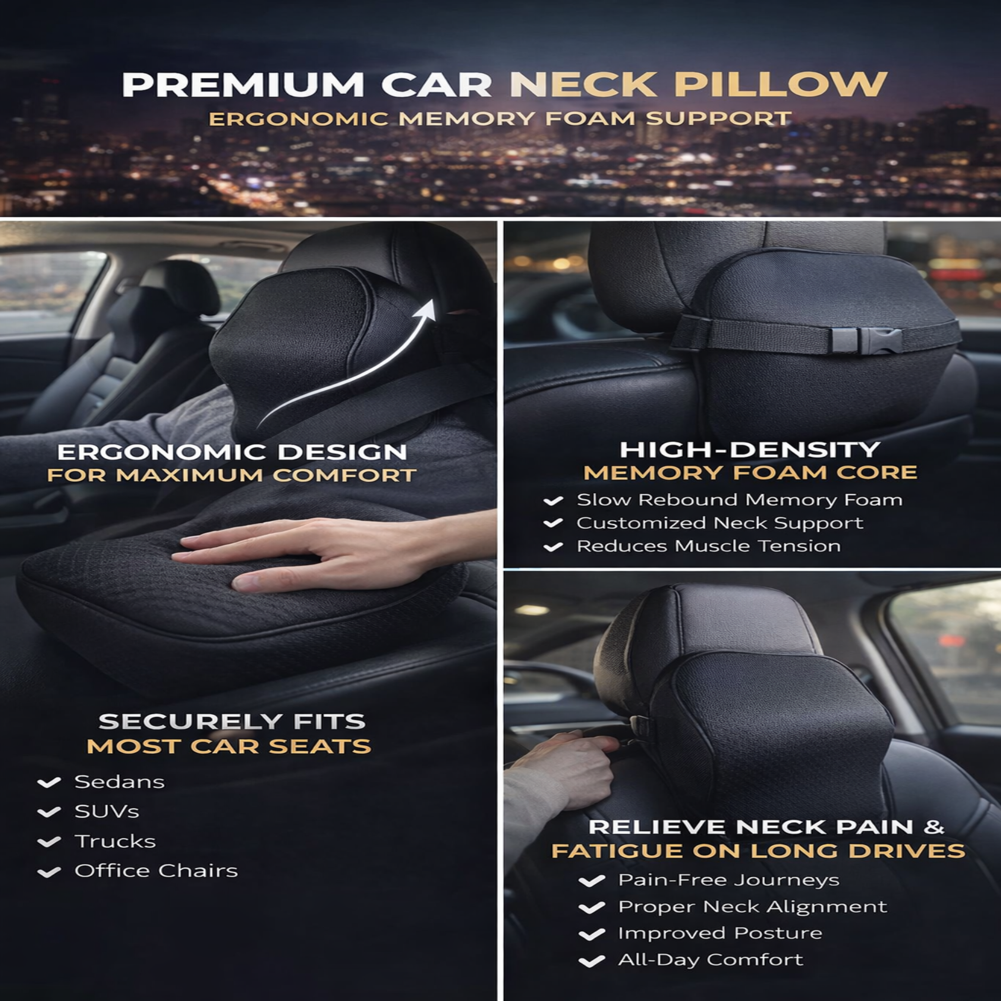 Experience premium comfort every time you hit the road with our ergonomic Car Neck Pillow.