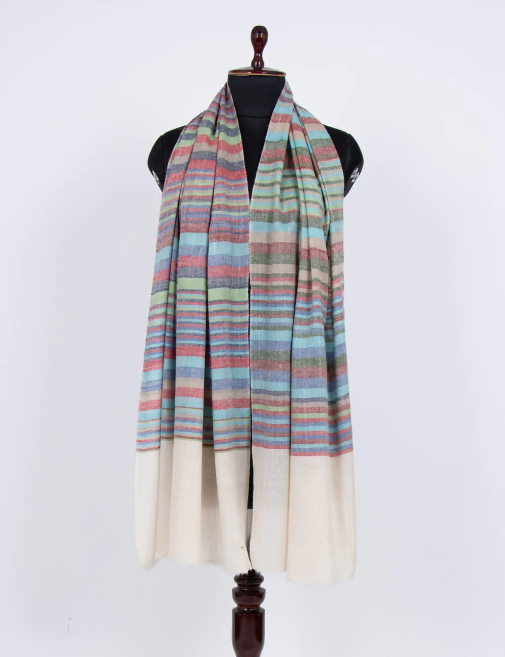 Discover the Carnival Cascade Pashmina Wrap, a masterpiece of craftsmanship and luxury. Handwoven from 100% Pure Ladakhi Cashmere, it offers exceptional softness and warmth. Its sophisticated pattern and vibrant colors transform any outfit, blending opulent comfort with artistic elegance.