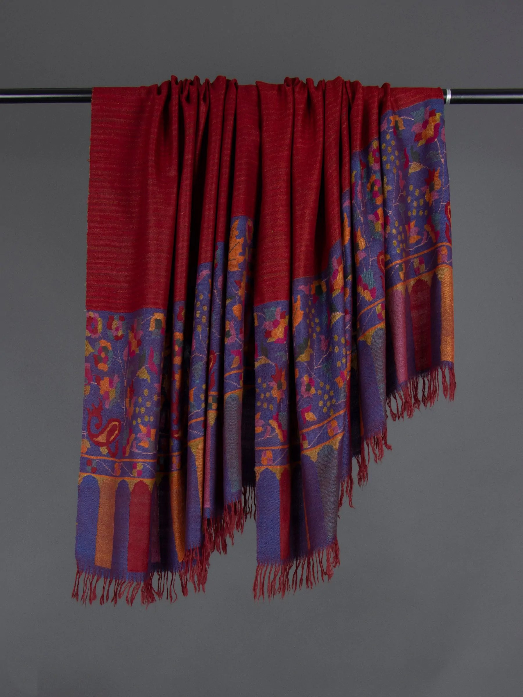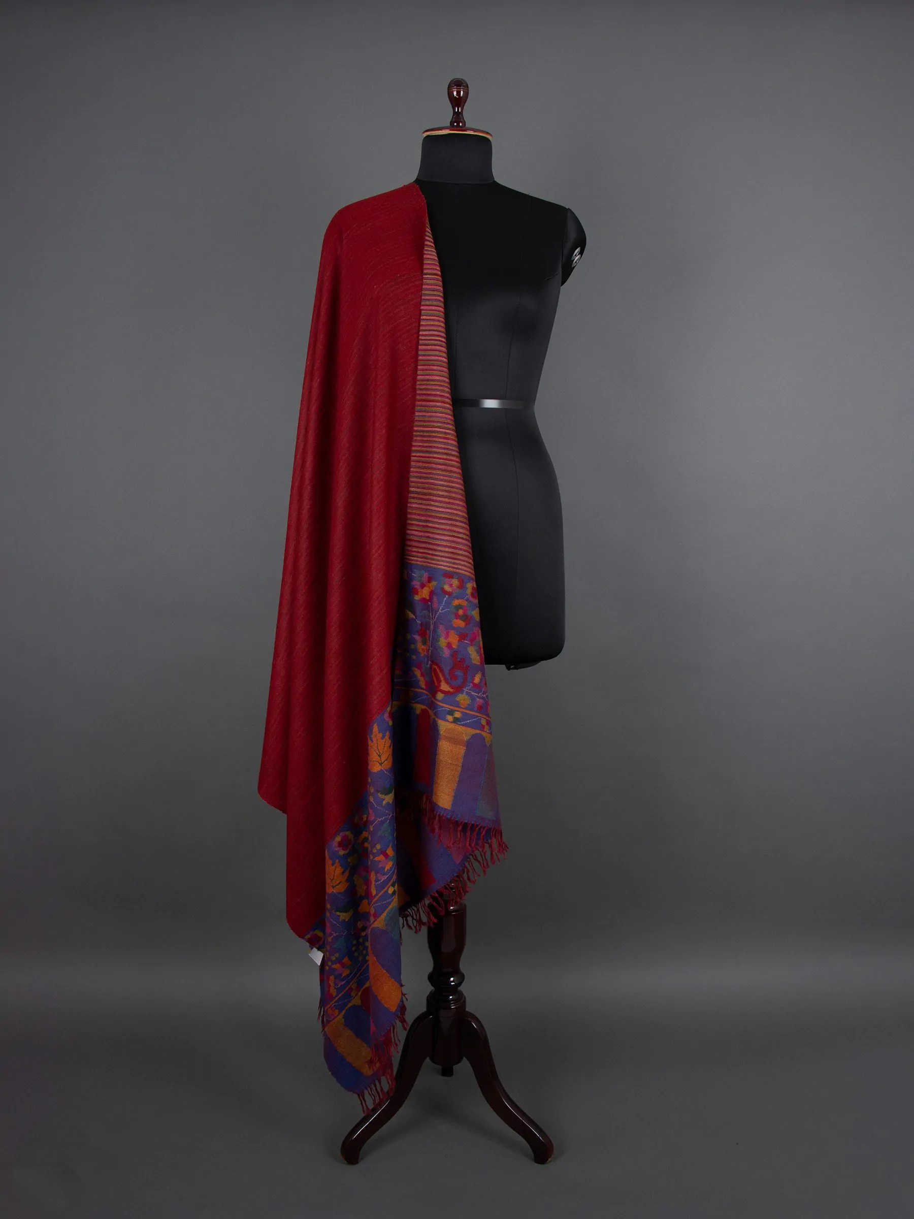 Introducing the DuoTone Kani Elegance Pashmina Shawl – a masterpiece that transcends time and tradition. Immerse yourself in the enchanting world of festive elegance, meticulously crafted by seasoned artisans. Each inch of this shawl is a testament to the age-old artistry preserved on traditional handlooms, weaving a story of cultural richness and sophistication.
