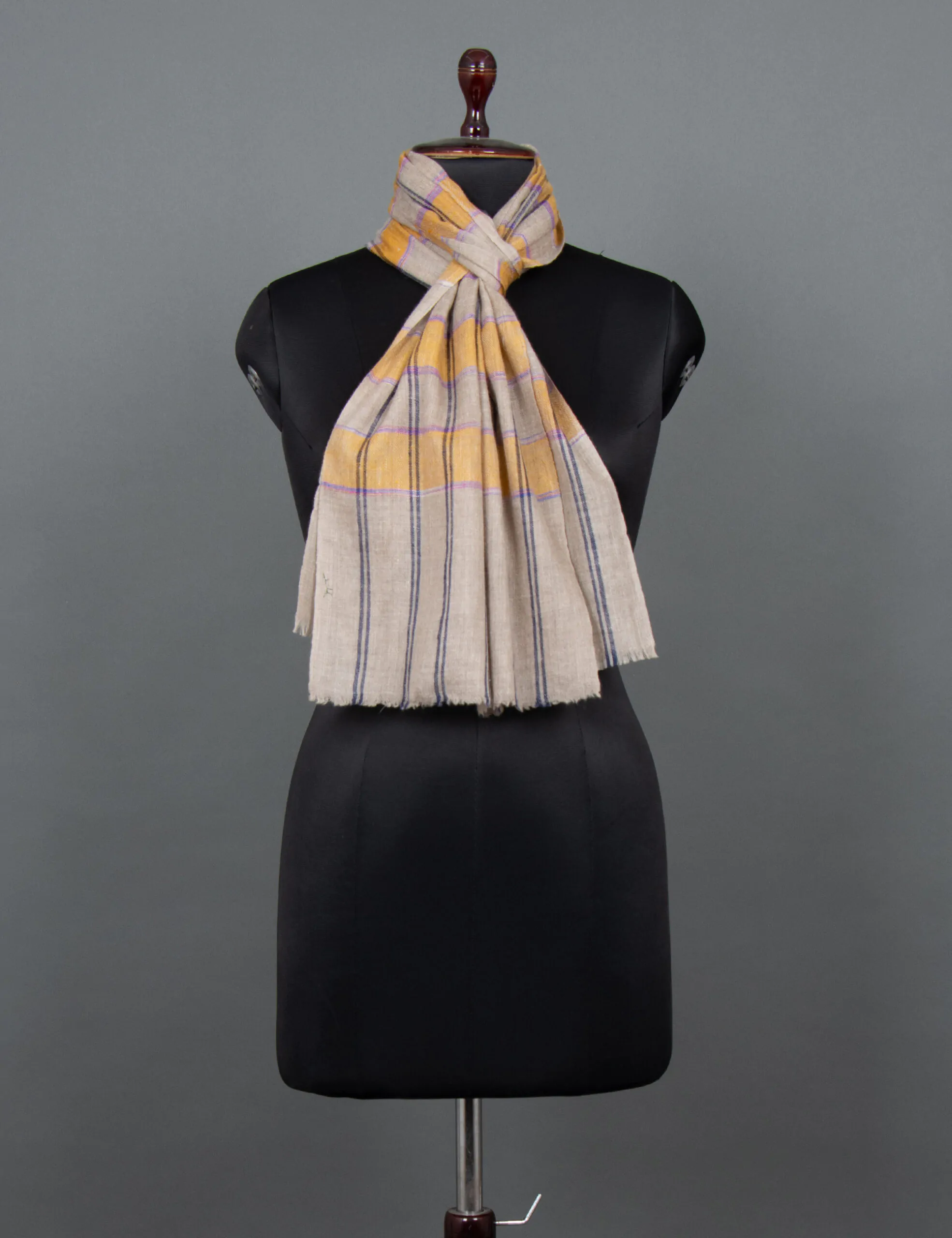 “Enchanting Hues: Beige Infused Pashmina Stripes” is a luxurious scarf crafted with meticulous hand embroidery, featuring a soft and lightweight feel for all-day comfort. The delicate beige stripes add subtle beauty, making it a timeless accessory that effortlessly elevates any outfit. Experience the epitome of style and grace, combining fashion and craftsmanship in this sophisticated pashmina scarf.