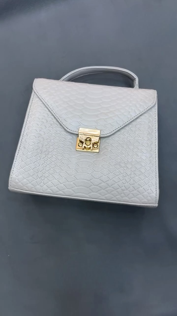 Be the first to review “Grey python-textured leather handbag” Cancel reply