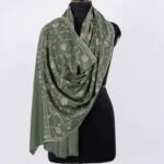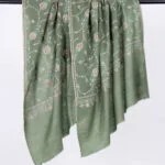 The Gulmarg Greenery Pashmina Wrap, crafted from premium Ladakhi Cashmere wool, features intricate Sozni embroidery. Handwoven and hand-embroidered, it embodies the regal elegance of traditional shawls, once favored by royalty. This wrap combines timeless artistry with exceptional craftsmanship.