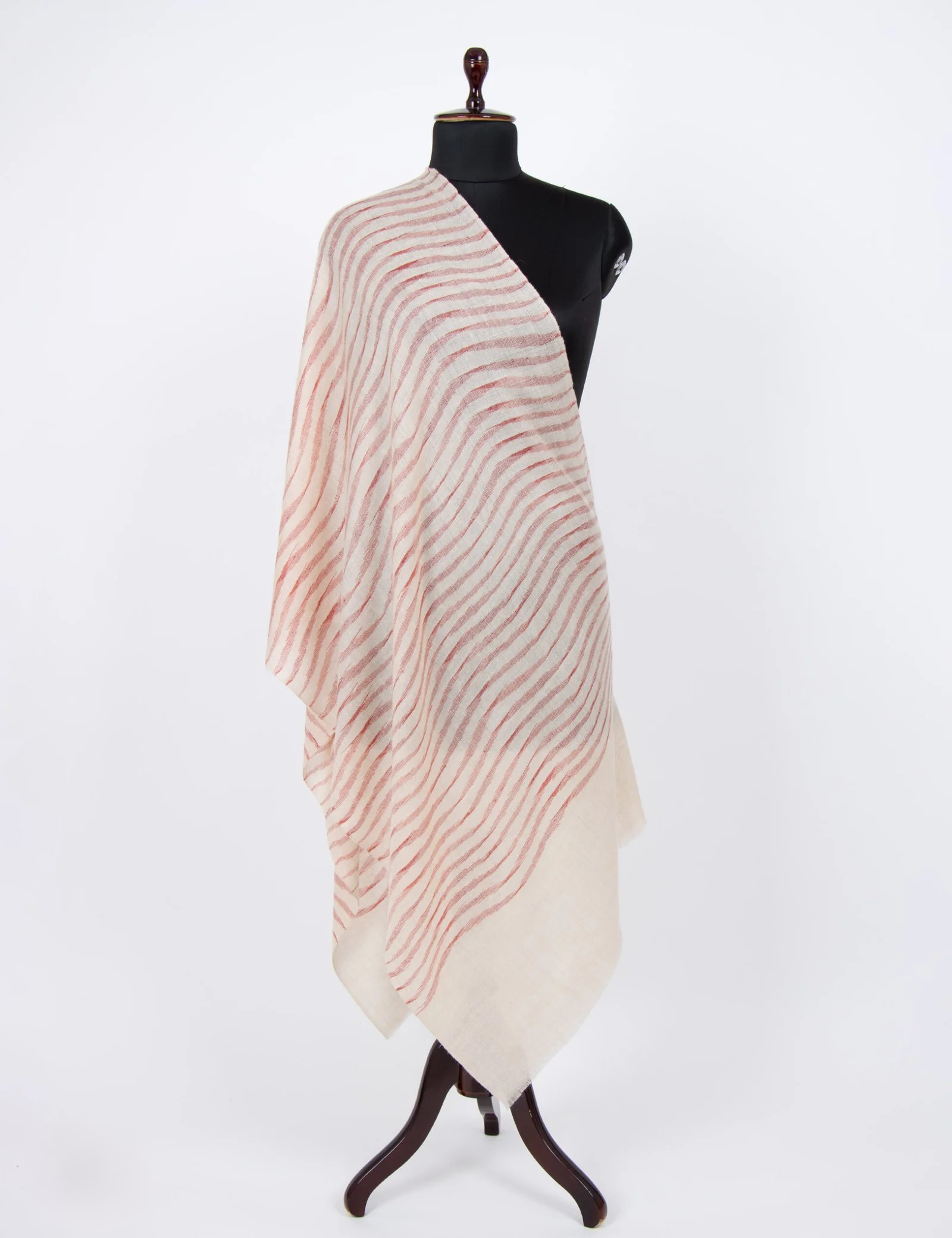 This handwoven shawl combines ancient weaving techniques with intricate Ikat patterns, showcasing the exceptional craftsmanship of Kashmir. Each piece, meticulously crafted by skilled artisans, reflects the rich cultural heritage and dedication of the region. The result is a stunning wrap that embodies timeless elegance and artistic excellence.