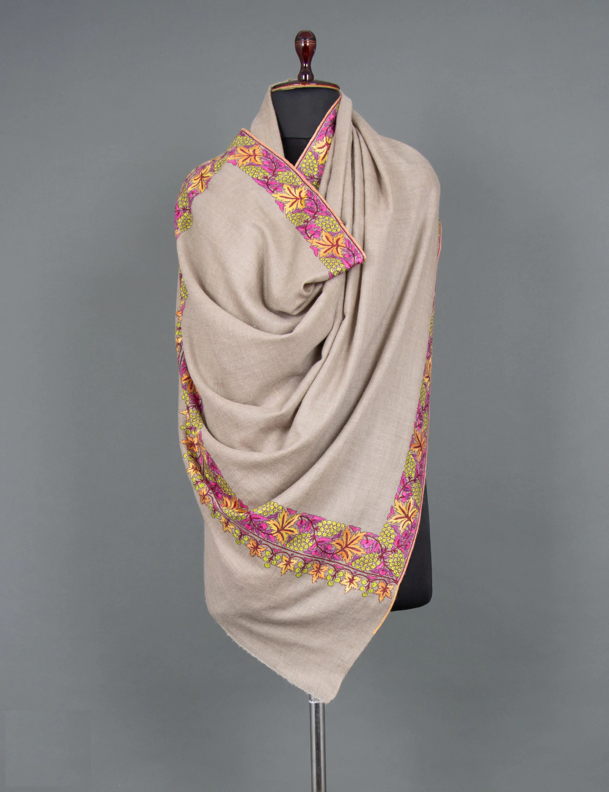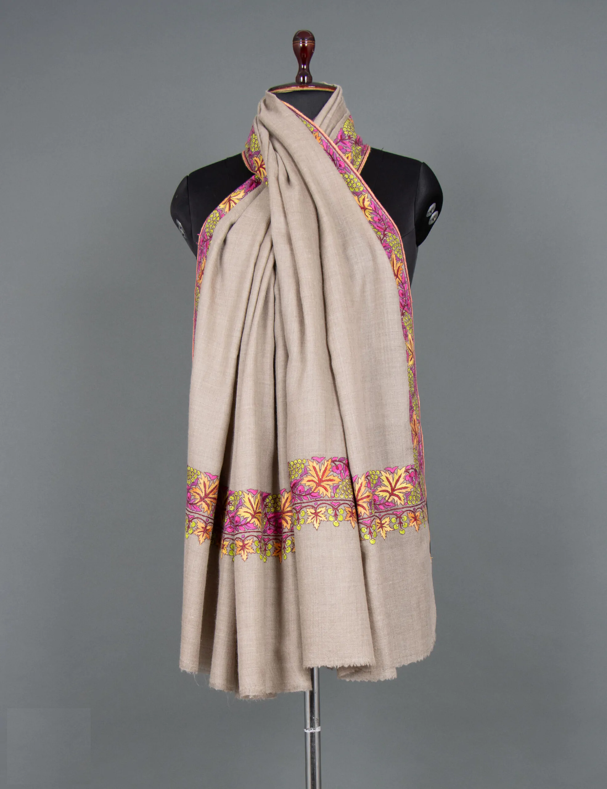 Introducing our Mapel Leaf Design Kashmir Pashmina Shawl, a true masterpiece that promises to mesmerize with its stunning embroidery. Meticulously crafted by skilled artisans, this shawl is a seamless blend of elegance and artistry. The delicate threadwork creates a symphony of colors, transforming it into a captivating accessory that effortlessly enhances any outfit.