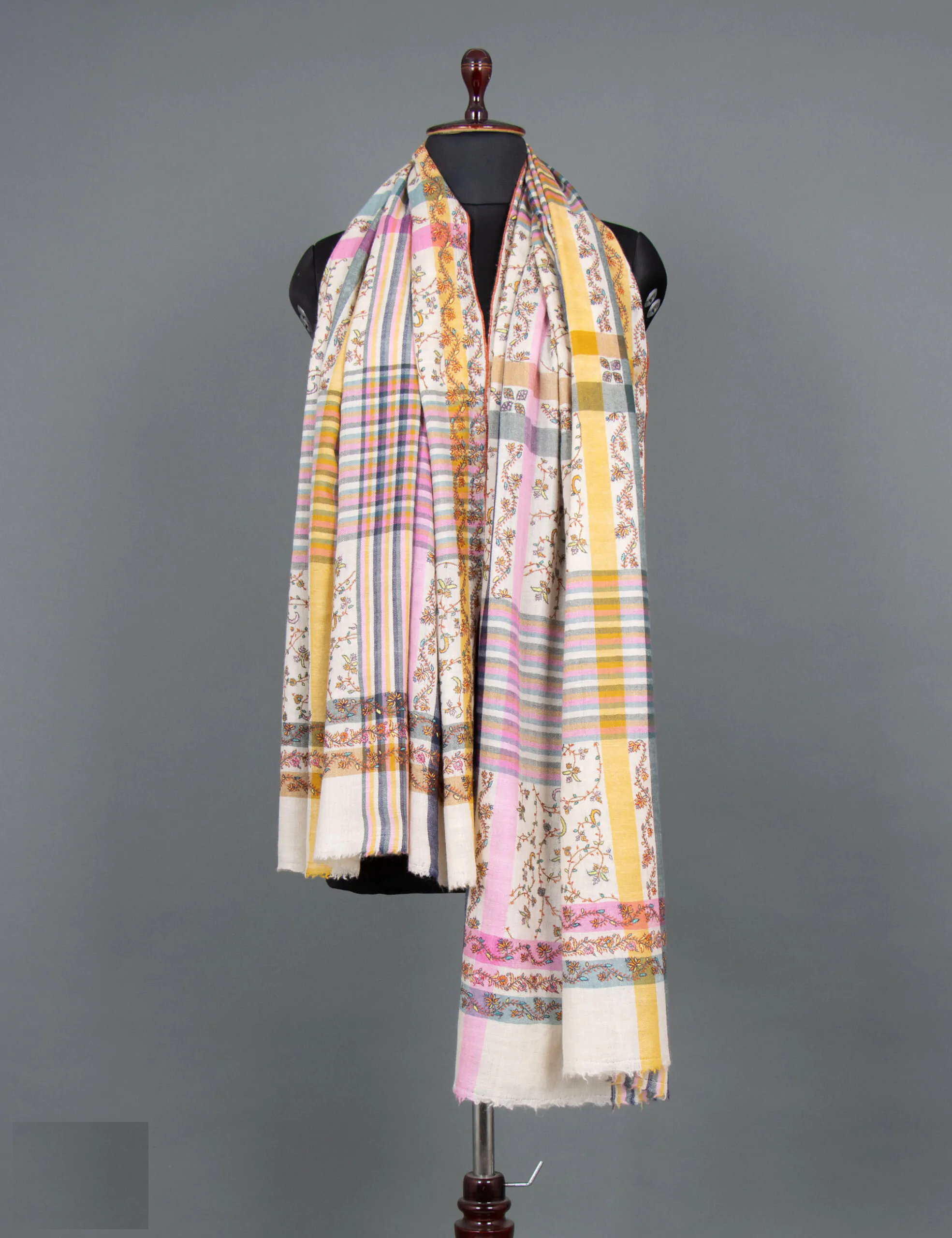 This Multi Color Rare Embroidered Pashmina Shawl is a versatile accessory suitable for both formal events and everyday wear. It effortlessly elevates any outfit, capturing attention with its regal charm and intricate embroidery. Crafted from luxurious Cashmere, the shawl not only offers unparalleled comfort and warmth but also allows you to showcase your individual style. This rare embroidered masterpiece promises to make a lasting impression during the winter and fall seasons, adding a touch of allure to your wardrobe.