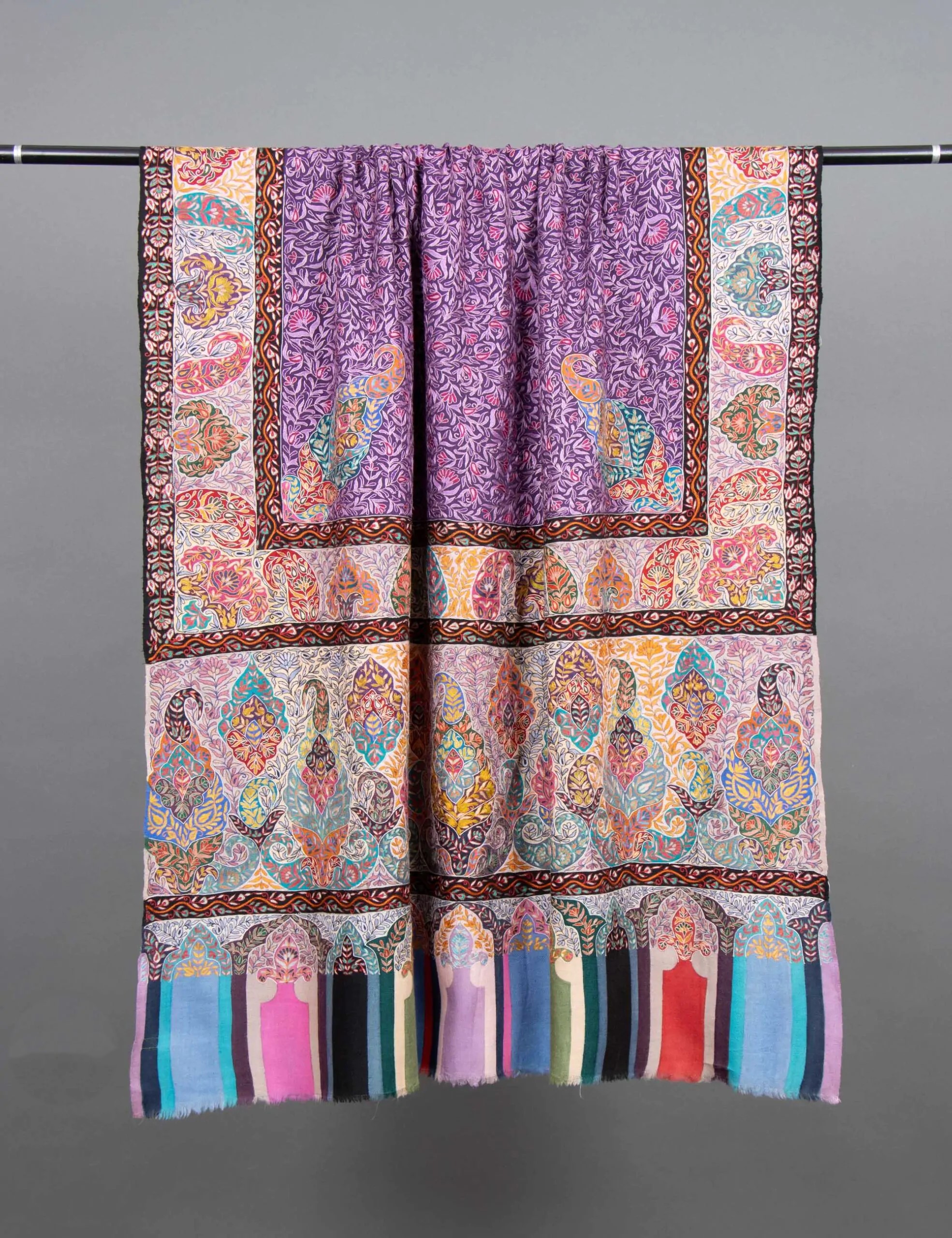 Indulge in elegance with our Nikah Nectar Bridal Kalamkari Pashmina. Handcrafted to perfection, this pure pashmina shawl features intricate kalamkari hand embroidery, showcasing meticulous craftsmanship with delicate floral and paisley motifs.