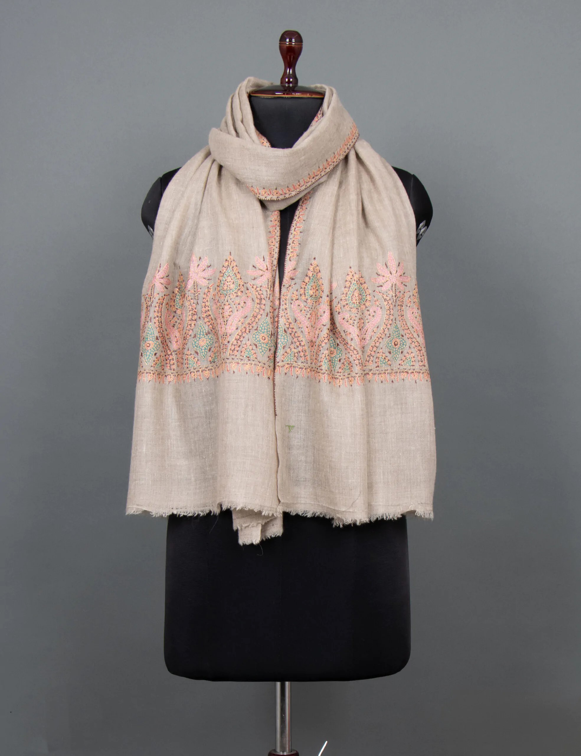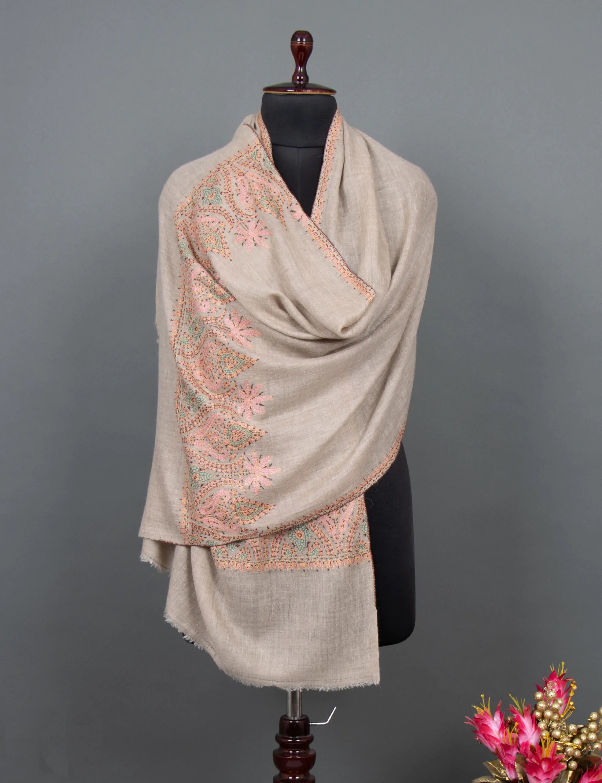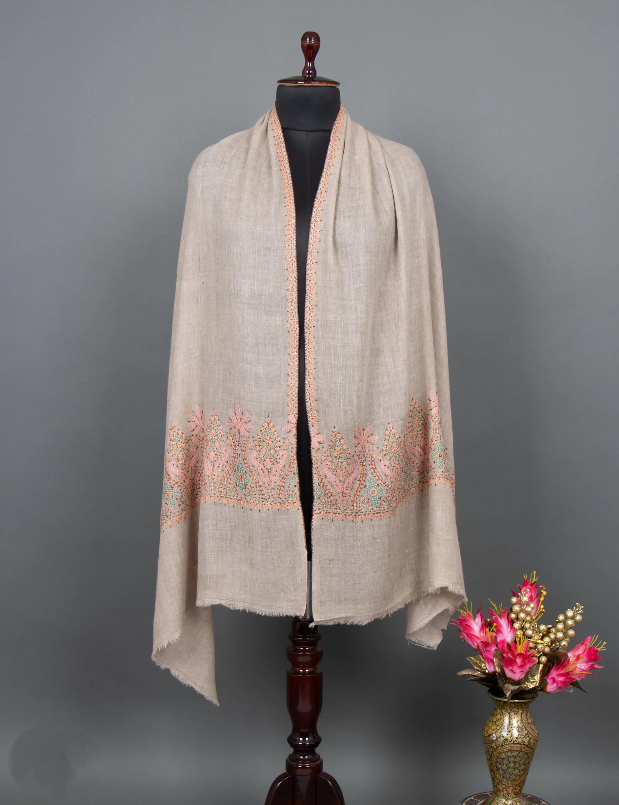 Indulge in luxury with this exquisite ensemble crafted from the finest pashmina fabric, offering unparalleled softness and lightweight comfort. The graceful drape over your shoulders, coupled with intricate embroidery, elevates the piece to new heights of sophistication, ideal for special occasions or glamorous nights out.