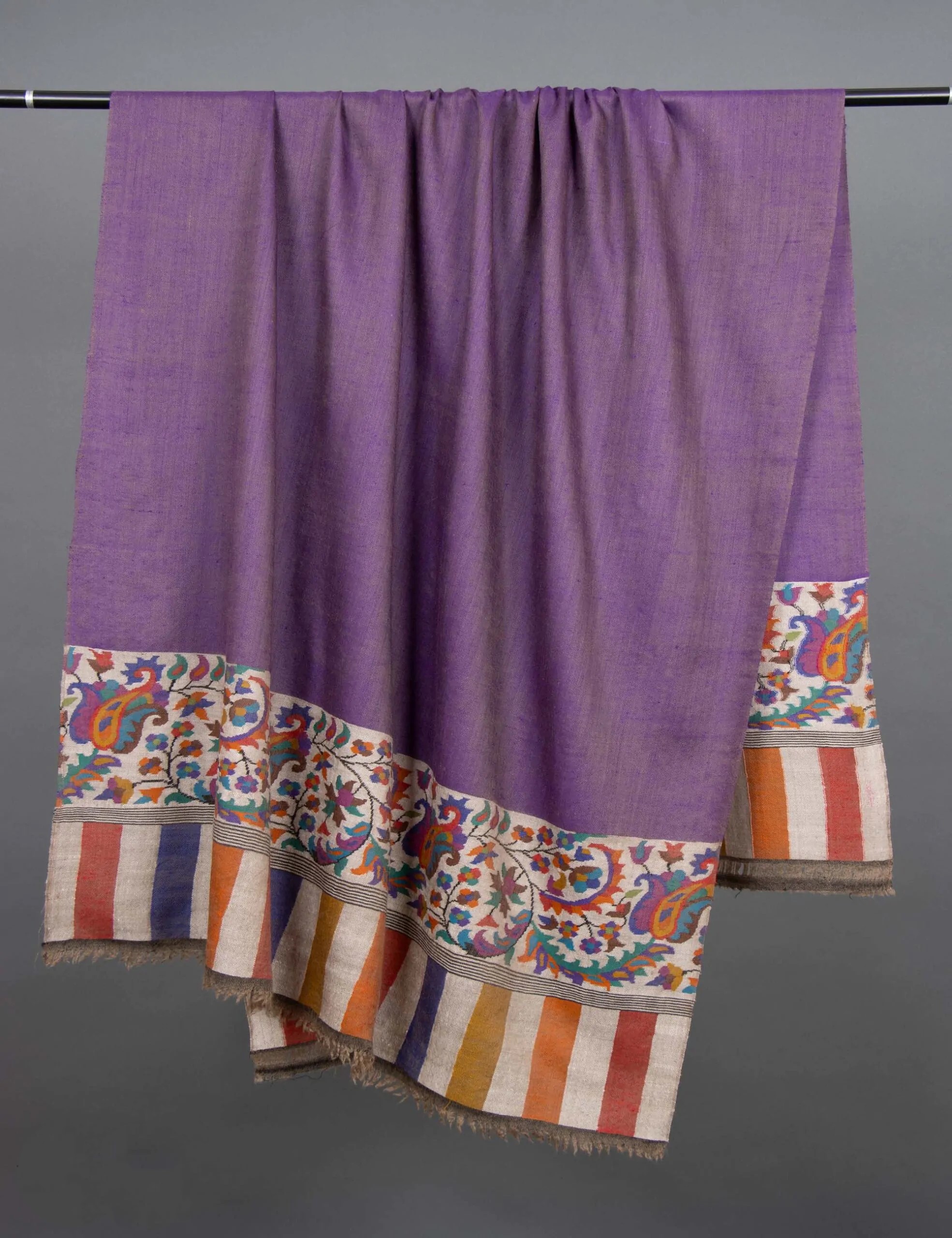 Indulge in the exquisite allure of the Purple Elegance Kani Pashmina Shawl – a masterpiece woven with meticulous craftsmanship, each thread weaving a narrative of artistry and heritage. Immerse yourself in unparalleled warmth and comfort, as only genuine Pashmina can offer. Beyond a mere accessory, this shawl is a manifestation of your distinctive taste and refined personality, allowing you to make a bold statement in luxury fashion. Elevate your style, order your piece of sophistication today, and embrace the epitome of opulence firsthand.