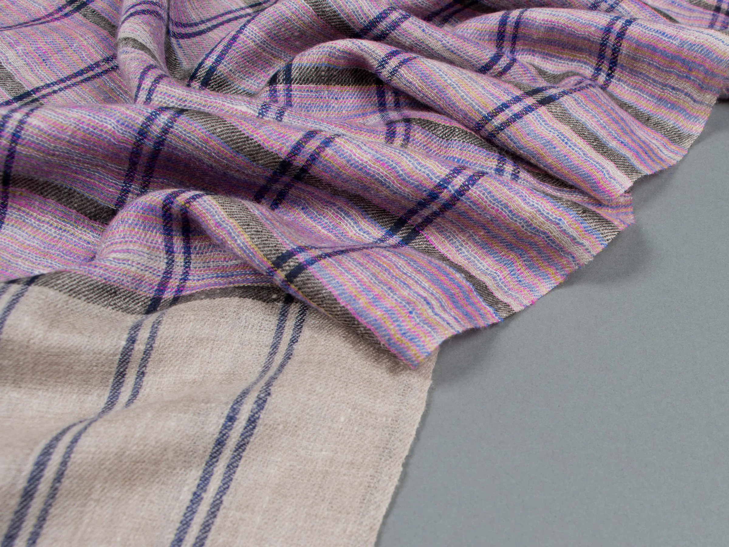 “Royal Cascade: A luxurious beige base Pashmina Striped Muffler, meticulously hand-embroidered with skilled craftsmanship, weaving a tale of timeless beauty. The subtle charm of this exquisite piece, adorned with delicate stripes, effortlessly elevates any outfit.”