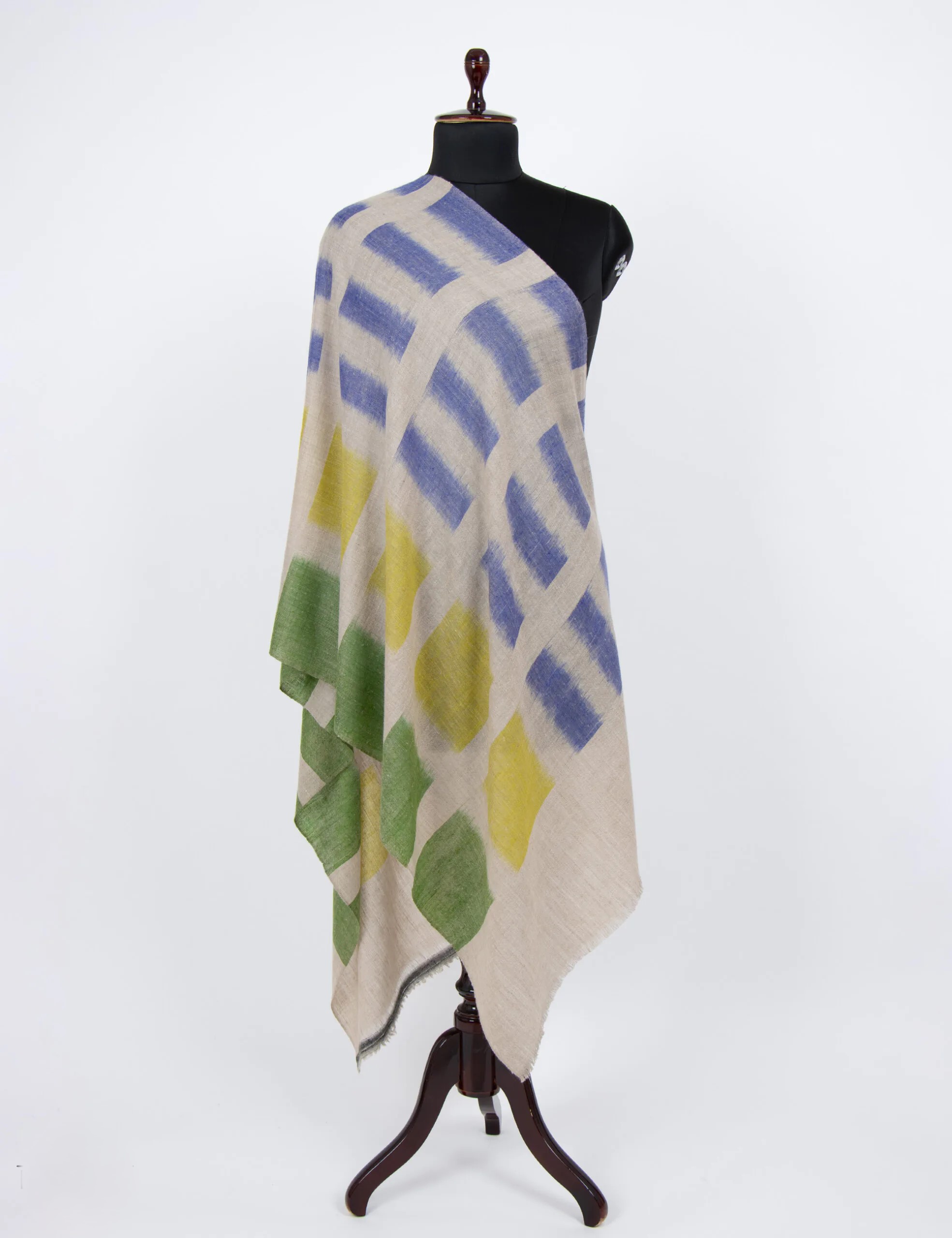 This elegant accessory seamlessly combines traditional Pashmina fabric with a modern twist, featuring an exceptional pattern. Crafted from luxurious Cashmere, the timeless shawl adds sophistication to any outfit. Embrace the richness of heritage and elevate your style with this stunning and versatile accessory.