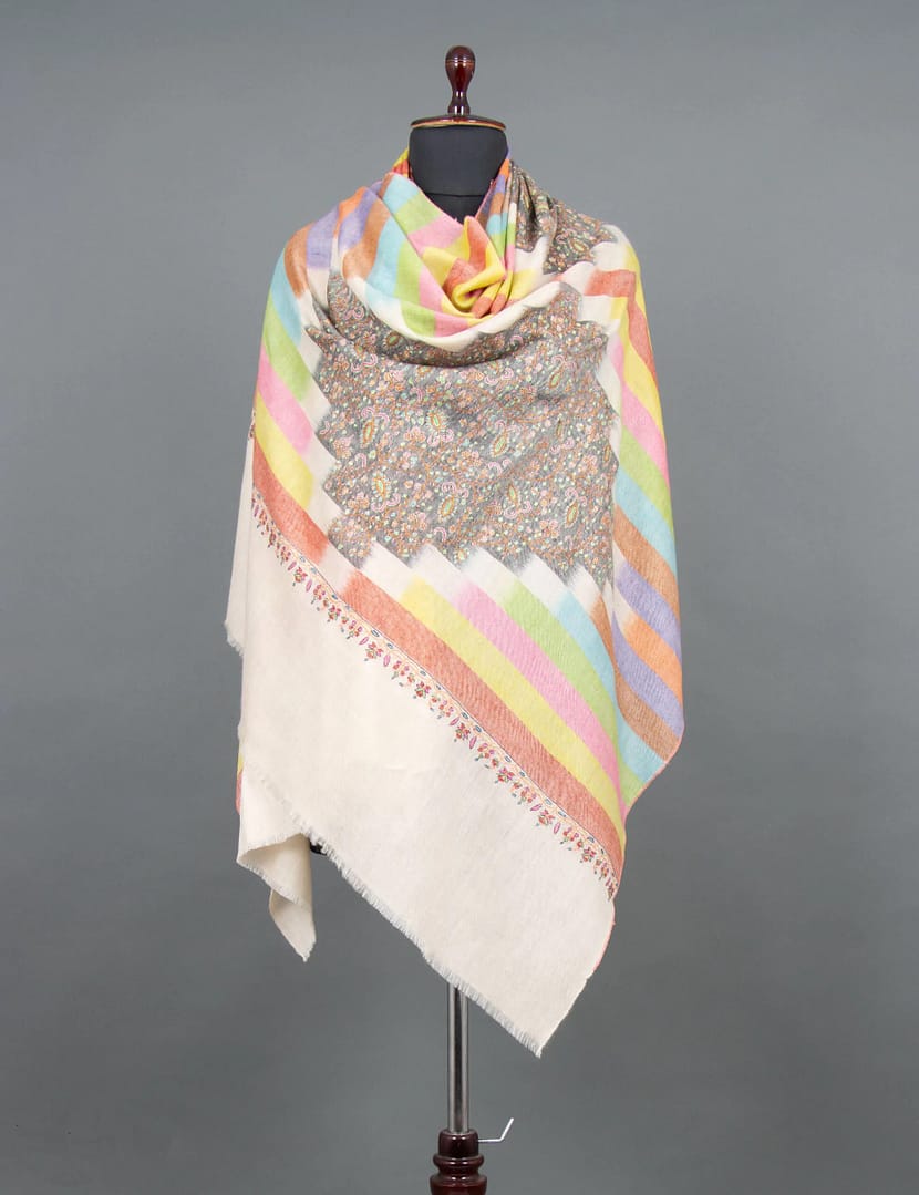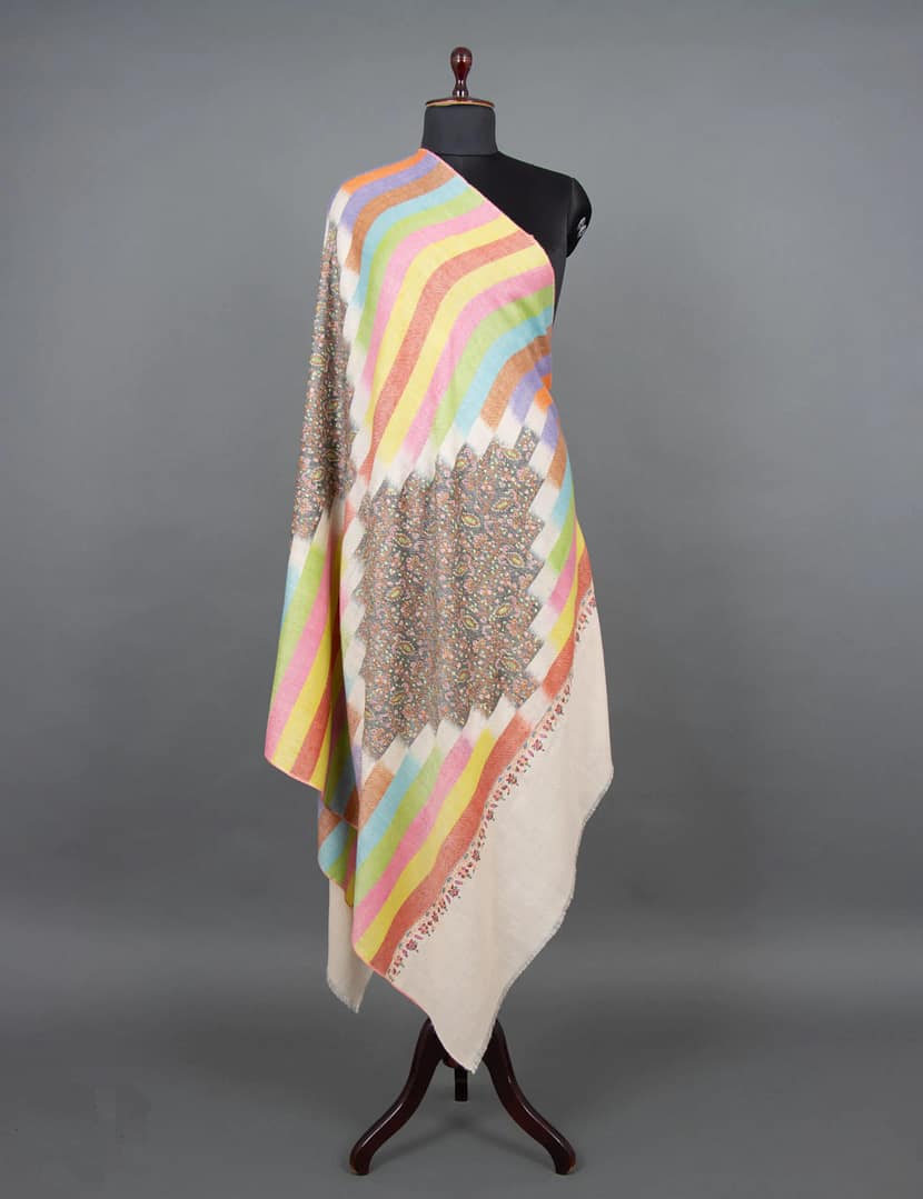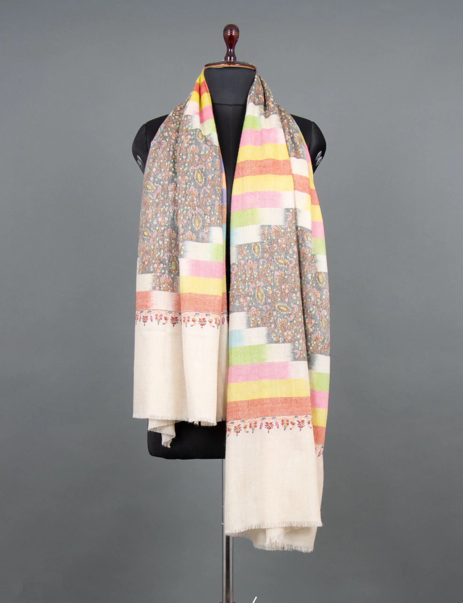 “Discover a masterpiece of craftsmanship with our Unique Colorful Woven and Embroidered Shawl. Each intricate stitch weaves a tale of tradition and artistry, showcasing vibrant colors and delicate patterns. This stunning accessory is a true standout, adding sophistication to any outfit. Crafted from the finest materials, it not only captivates the eye but also offers unmatched softness and comfort.”