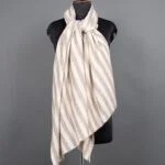The White Striped Pashmina Shawl epitomizes true luxury, blending exquisite craftsmanship with timeless elegance. Meticulously handwoven, each thread reflects cultivated taste and impeccable style, creating an art piece shaped by human touch rather than assembly lines. This heirloom shawl is a testament to unique fashion sensibilities, and its justifiable price mirrors its extraordinary composition. Beyond mere apparel, it embodies the passion of artisan weavers, offering a softness that transforms every moment it graces into something magically indelible. Elevating even the simplest outfit, this white striped masterpiece exudes class and dignity.